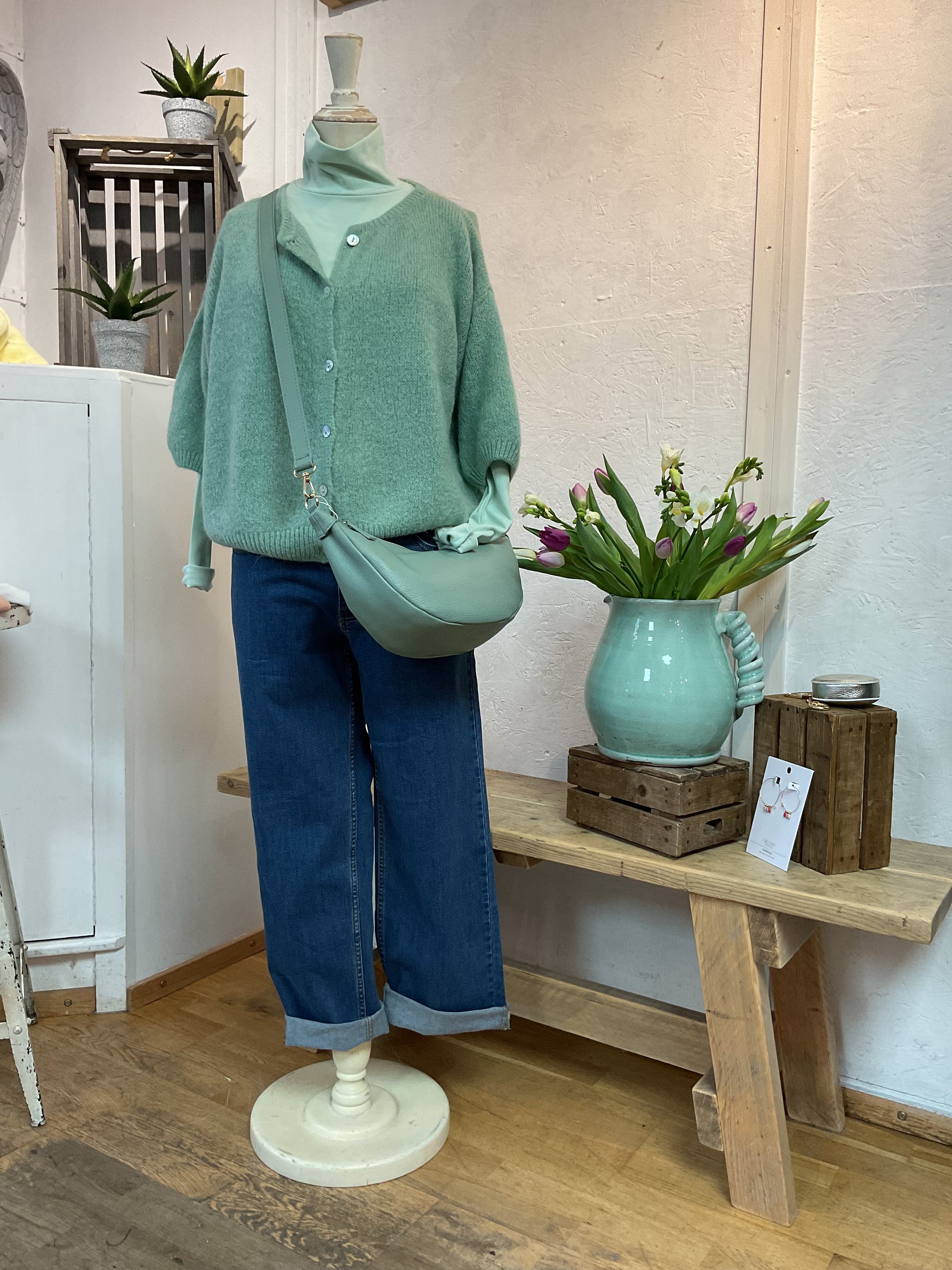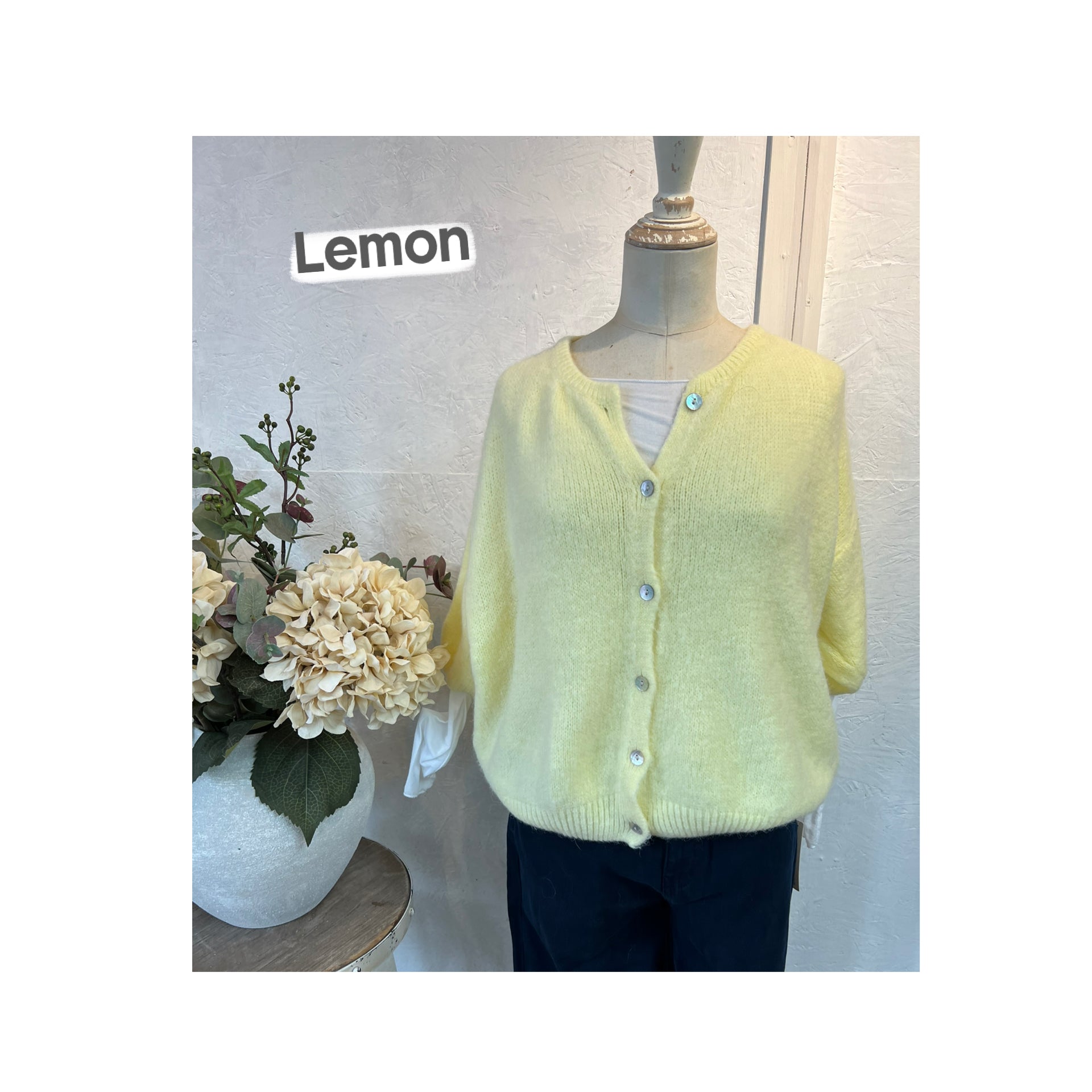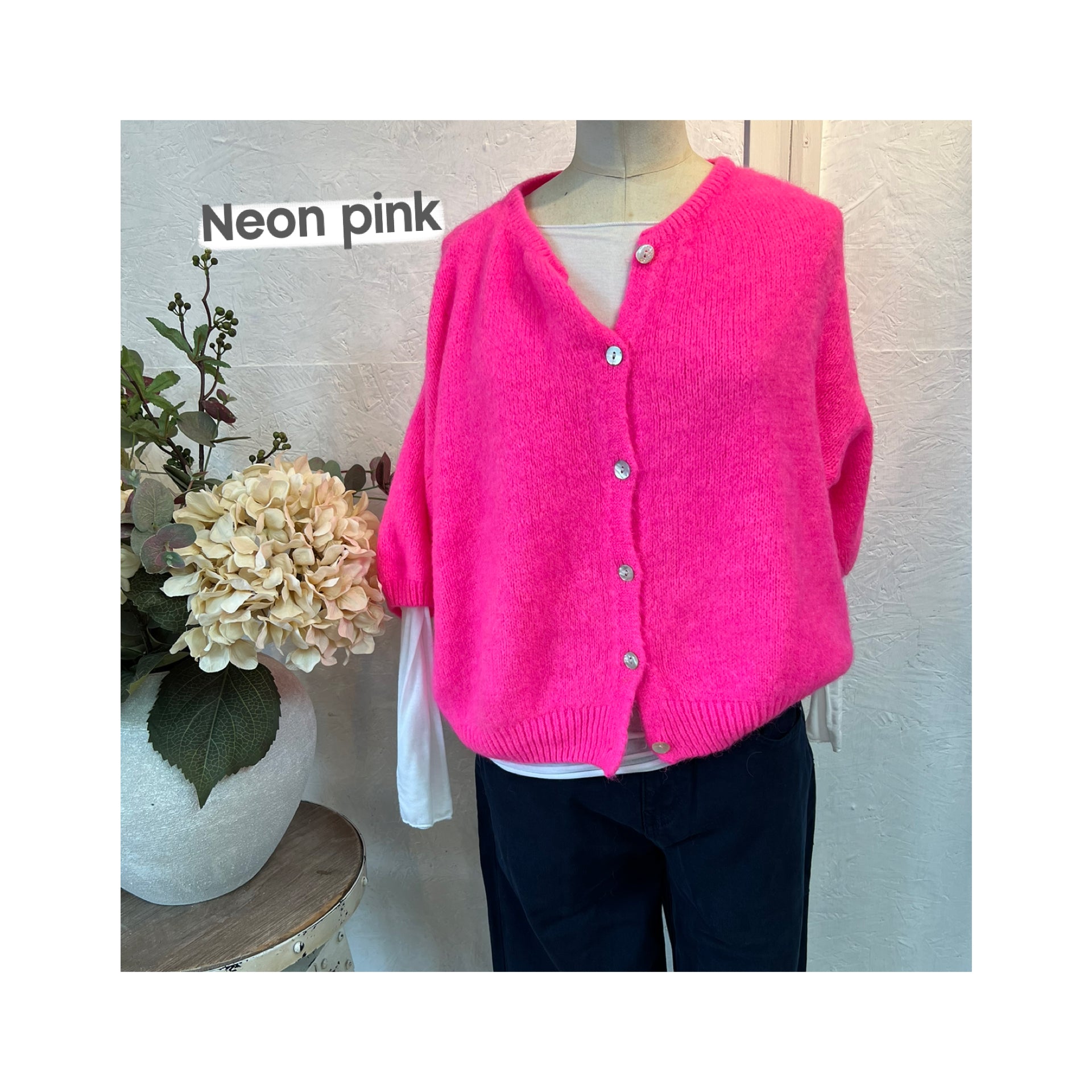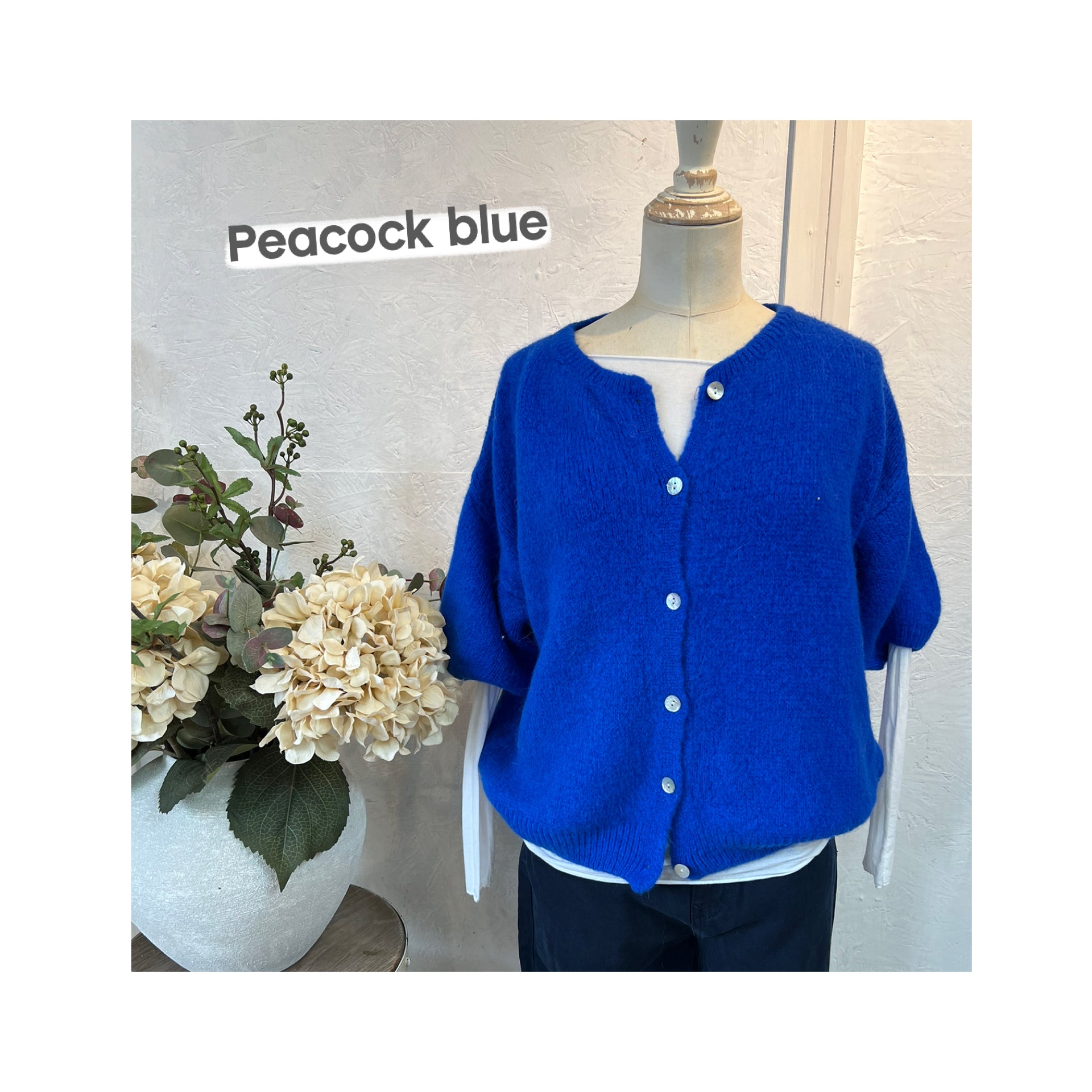 Alicia super soft cropped balloon sleeves cardigan with round neckline, pearlescent button detailing and ribbed trim detail.
