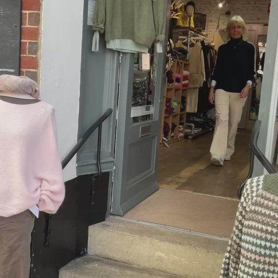 Introducing the Fairford – Luella’s latest roll neck jumper in a rich navy cashmere blend, finished with a bold ivory stripe detail on the sleeve. Effortless, stylish, and incredibly wearable.