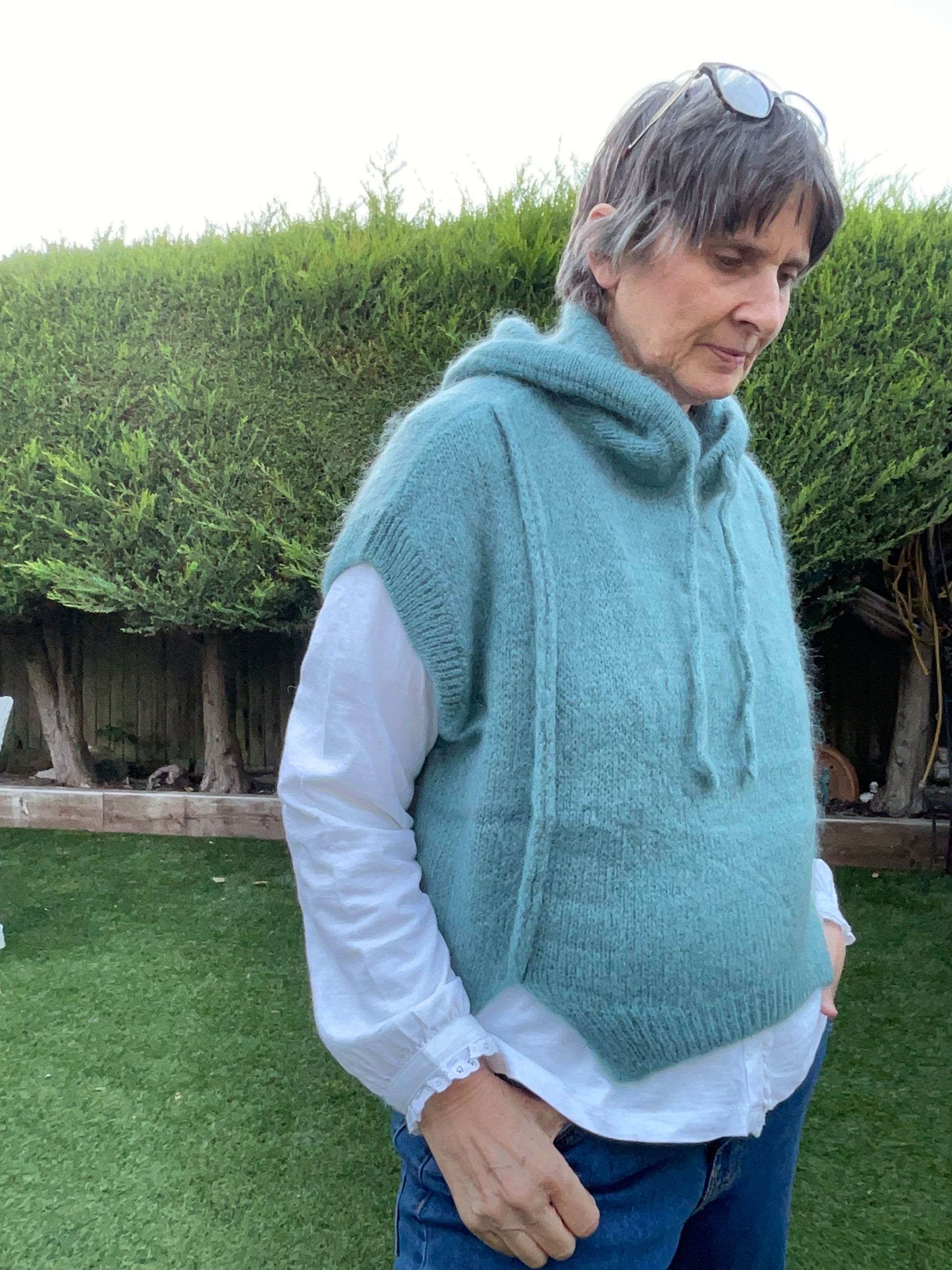 Hillesley Mohair Knit Hooded Tank Top Duck Egg