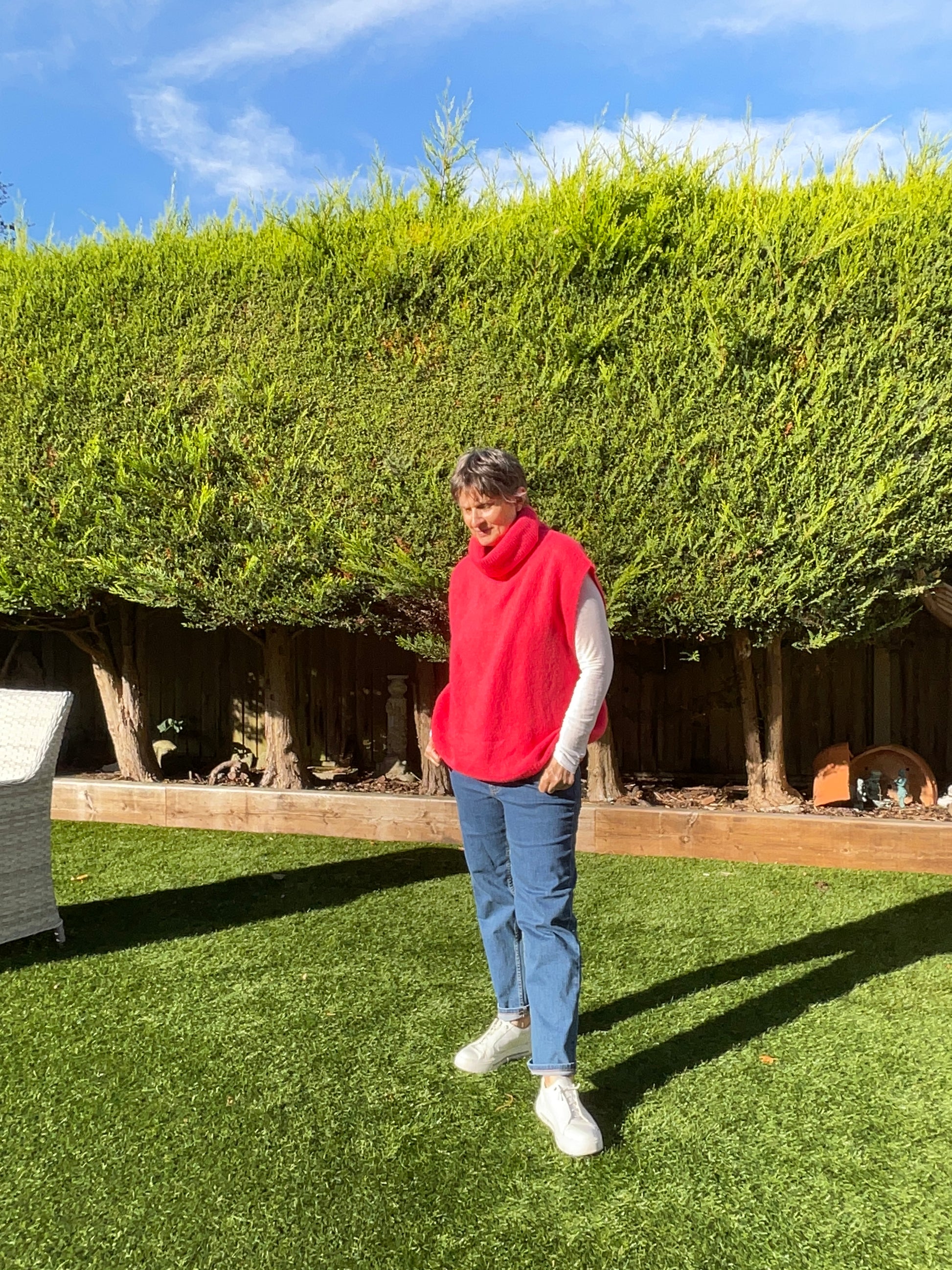 One Size fits 10 to 14. Chest 72cm Length 67cm. Made from 15% Mohair, 15% Wool, 34% Polyamide, 32% Polyacrylic, 4% Elastic.