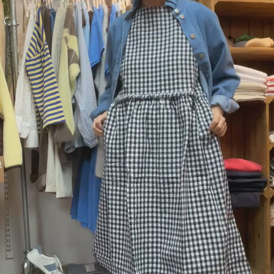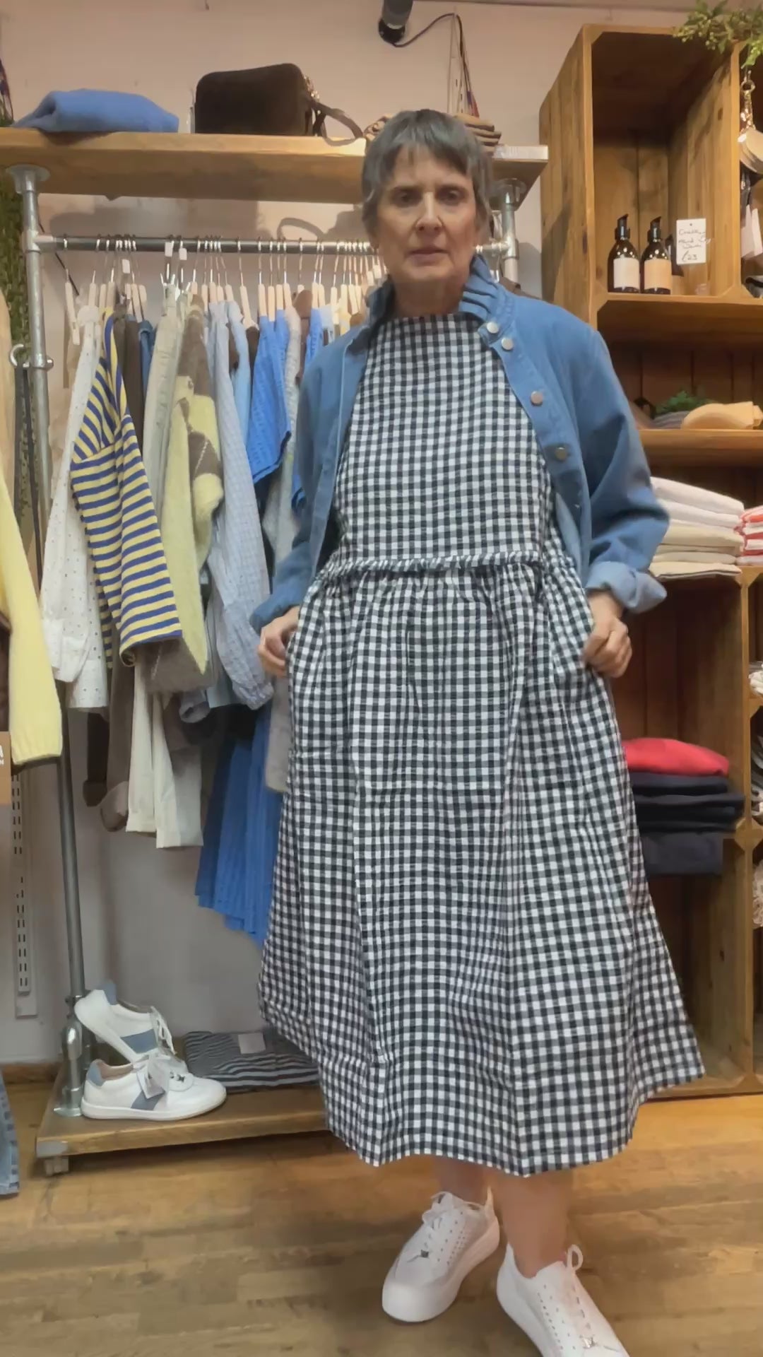 Nothing says summer quite like gingham and the Perla Dress makes it easy to wear. Designed in a relaxed shape with a soft scooped neckline, it features short sleeves with a subtle notch detail and a wooden button fastening at the back neck. The midi length keeps it versatile for everyday plans, while a gentle ruffle at the dropped waistband adds a pretty finishing touch.