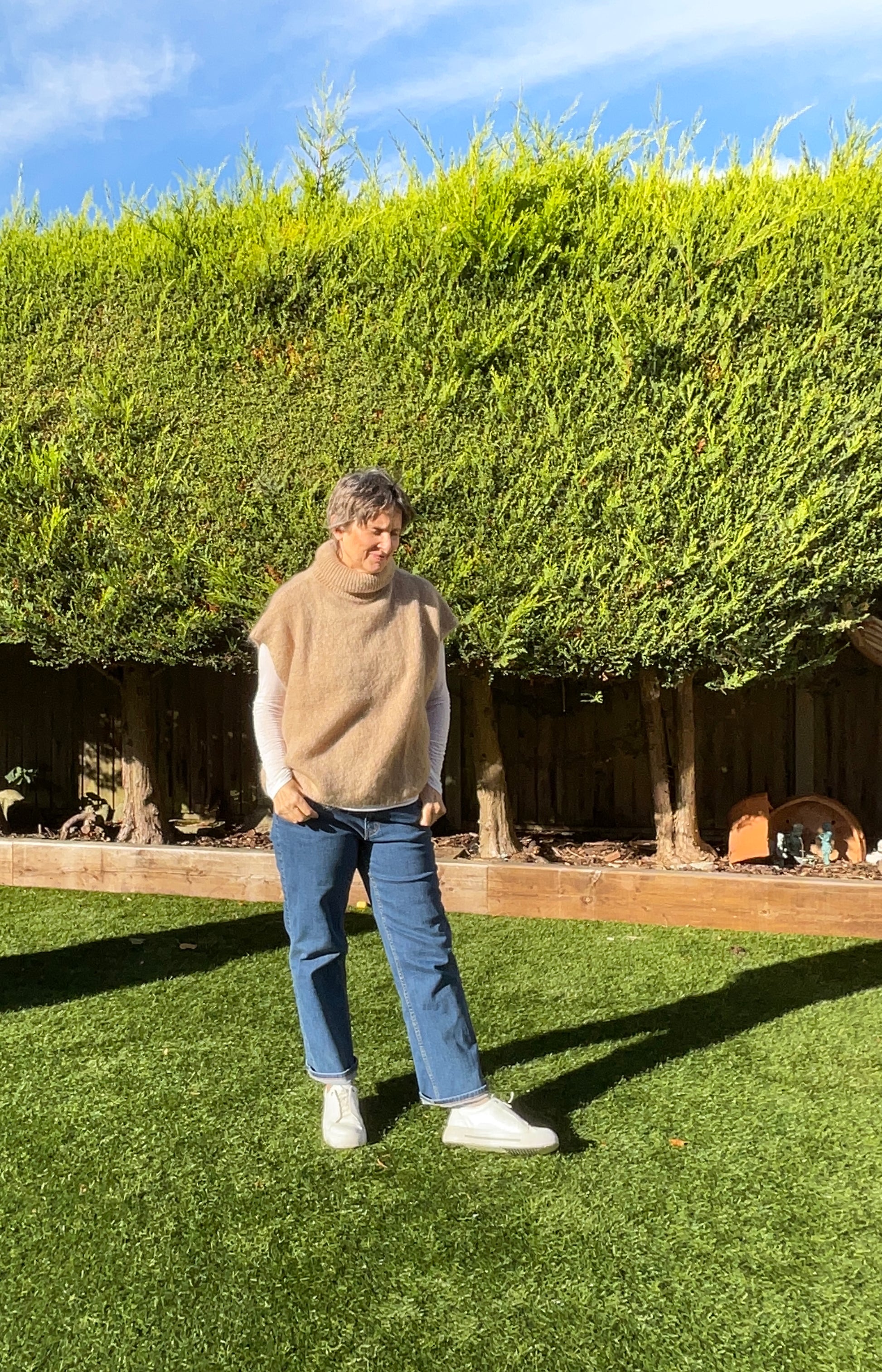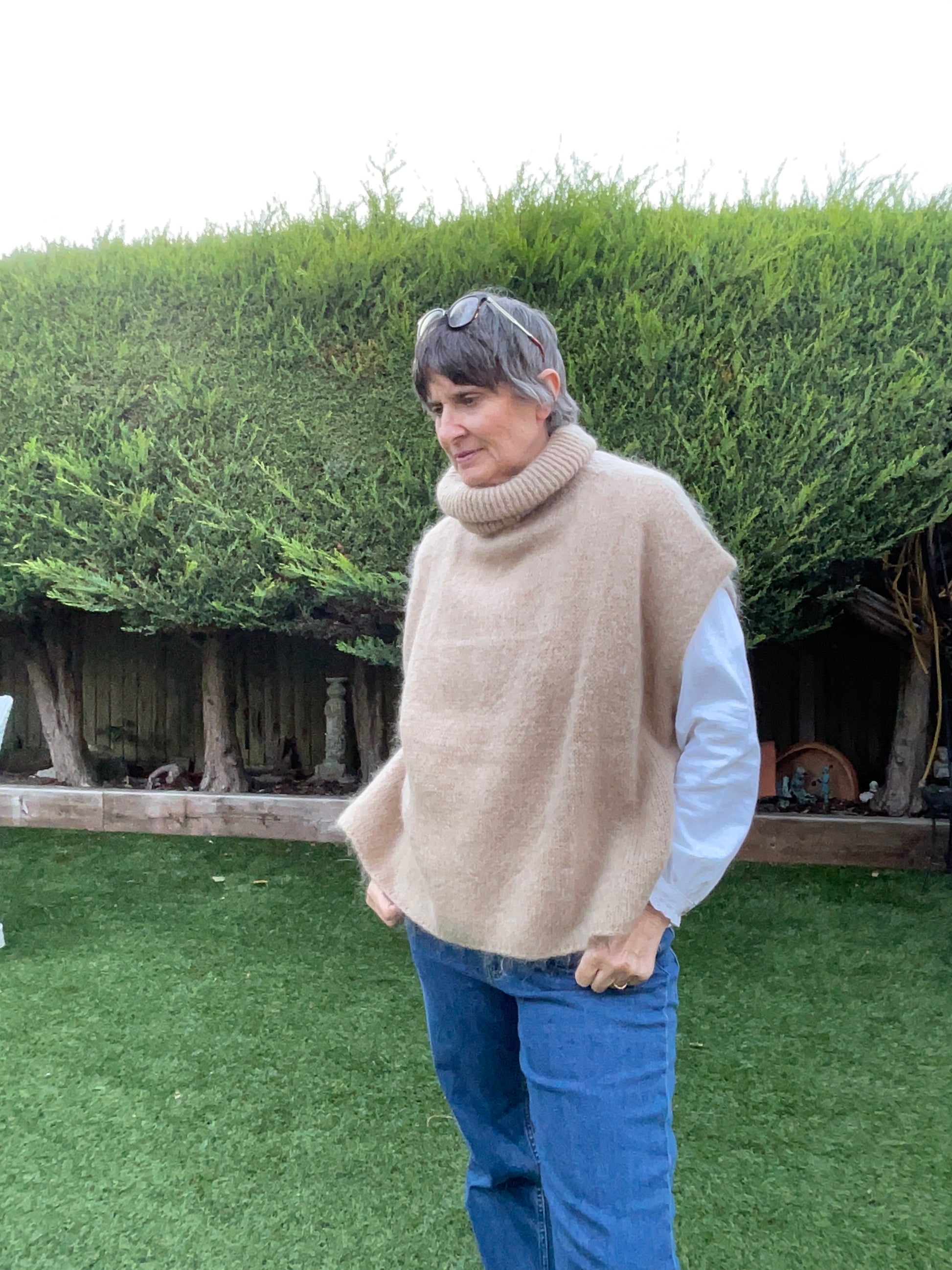 Uley Alpaca Knit Oversize Tank Top w/Roll Neck Toffee