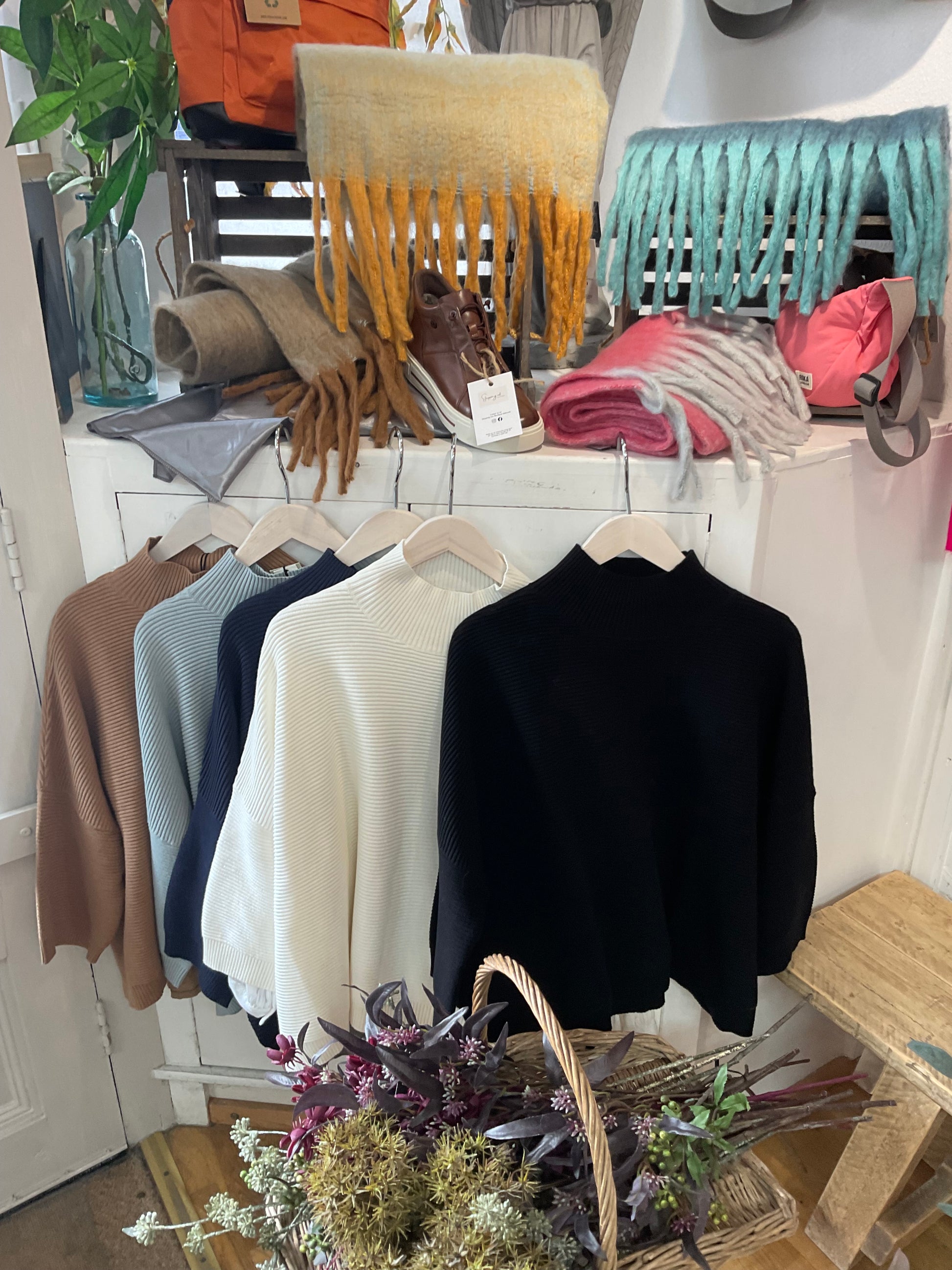 Vicki is a boxy, funnel neck jumper with small side vents, it is a flattering shape on everyone. Made in a cotton rib knit, making it perfect all year round and is a CHALK staple.
